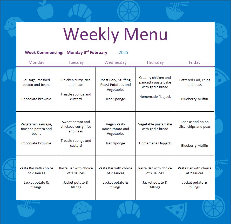 Here is the lunch menu for W/C 31stย January 2025๐ฝ๐ง๐ฅช๐๐ฉ๐