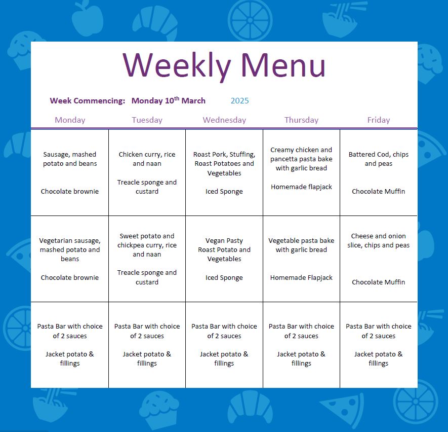 Here is the lunch menu for W/C 10th March 2025π½π§π₯ͺππ©π