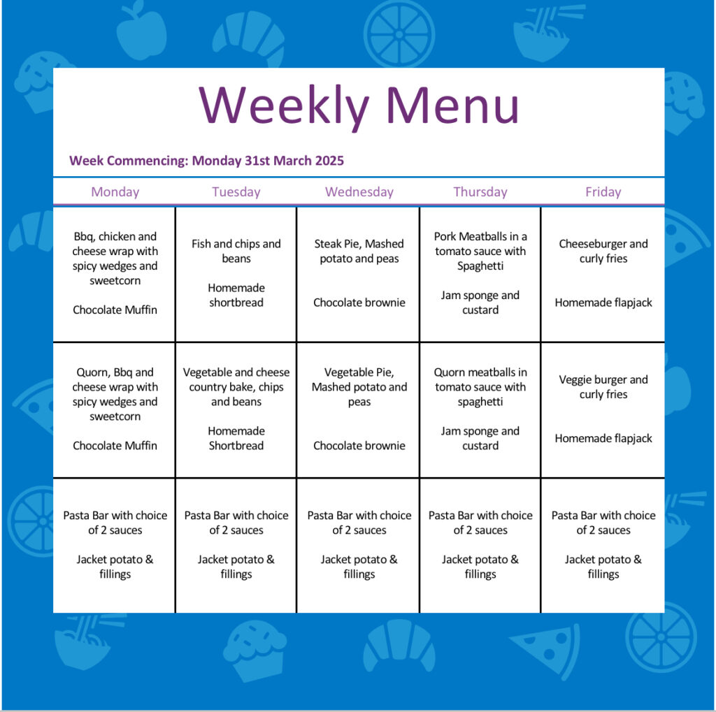 Lots of tasty food including fish π and chipsπ , cheese burger π , pasta bar π and lots of sandwiches π₯ͺ π